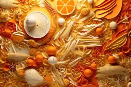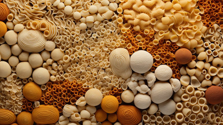 Generative AI, Variety of types, colors and shapes of Italian pasta, texture background