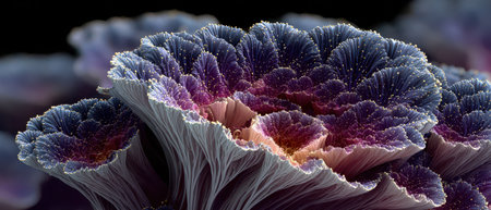 Vibrant coral like structures display intricate textures and colors resembling underwater landscapes.