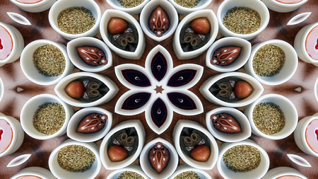 Abstract Breakfast Photo Symmetric Pattern Ornamental Decorative Kaleidoscope Movement Geometric Circle and Star Shapes
