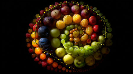 An artful arrangement of vibrant, nutrient-rich produce, featuring a variety of seedless fruit and luscious citrus, evoking feelings of health, sustainability, and the beauty of natural foods