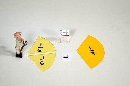 Mathematics background - fractions on black table, close up. Dividing fractions, math concept