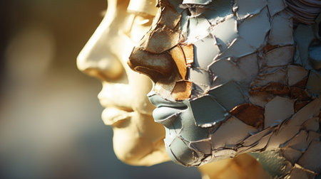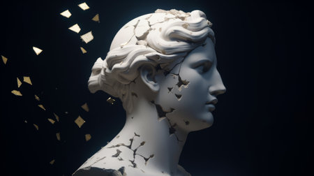 AI Generated. Cracked Marble Head Sculpture for Background Use