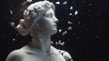 Shattered statue woman. Crumbling and breaking female silhouette. Generate ai
