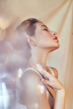Sensual beautiful young woman with bright stylish makeup and eyes closed