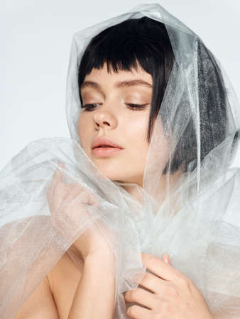 pretty brunette sheer veil luxury model attractive look