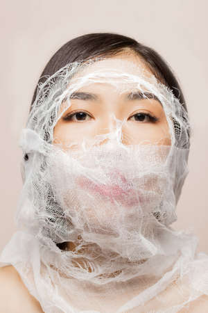 Fashion photo of beautiful Asian woman in mummy bandage