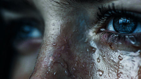 Close-up portrait of a beautiful young woman with tears in her eyes