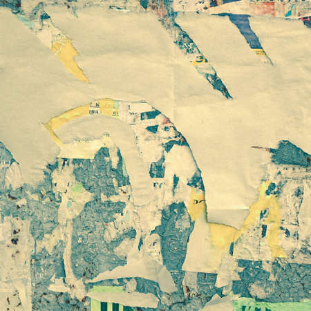 Old grunge ripped torn collage posters creased crumpled paper placard texture background with copy space for text or image