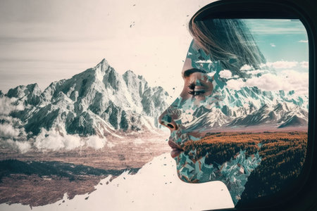 Contemporary art portrait of a woman featuring collage and double exposure techniques