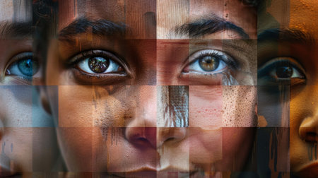 A collage of faces with one eye missing. The faces are of different colors and sizes. The collage is meant to represent the idea of diversity and the beauty of different cultures