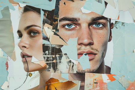 Abstract modern art collage portrait of young woman man Trendy paper collage composition.
