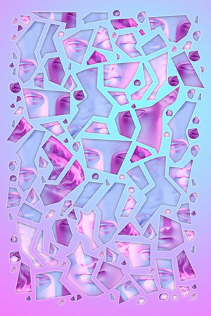 Male caucasian teen with distorted digital effect and fragmented overlay.