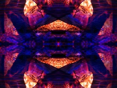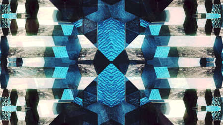 Pile of bullets on two separate axises. Geometric kaleidoscope pattern on mirrored axis of symmetry reflection. Colorful shapes as a wallpaper for advertising background or backdrop.