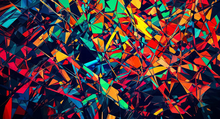 Multicolored Geometric Glass Fragments on Dark Surface. Generative AI.