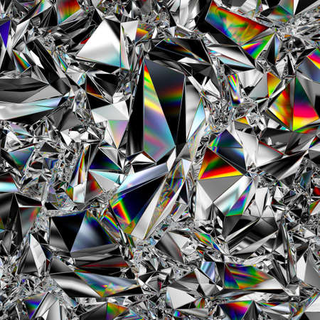 3d render, abstract crystal background, glass faceted wallpaper, polygonal geometric structure, crumpled holographic texture, metallic foil, iridescent crystallized wallpaper, light reflection