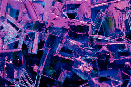 Stunning abstract image featuring a collection of vibrant blue crystal fragments. The image showcases an array of iridescent textures and shimmering reflections.