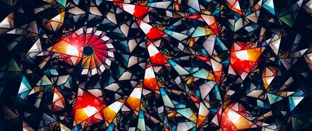Colorful stained-glass widescreen abstract background, computer generated fractal render
