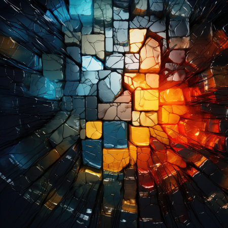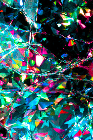Shattered glass texture creating a stunning colorful effect with reflections and refractions