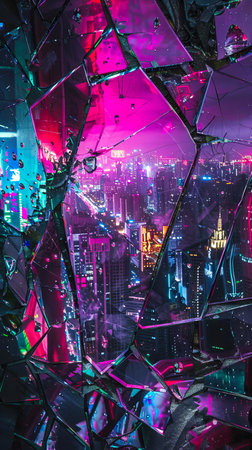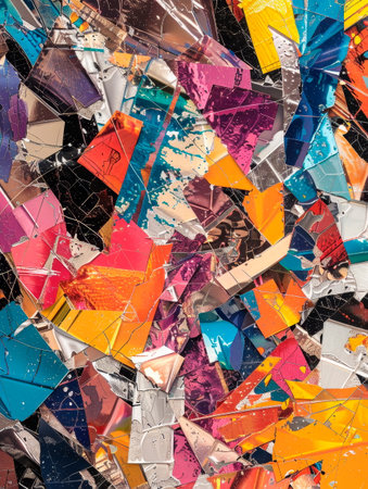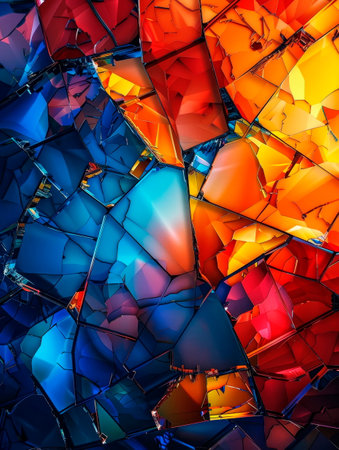 Abstract image of shattered glass reflecting colors, creating a dynamic and captivating visual effect.
