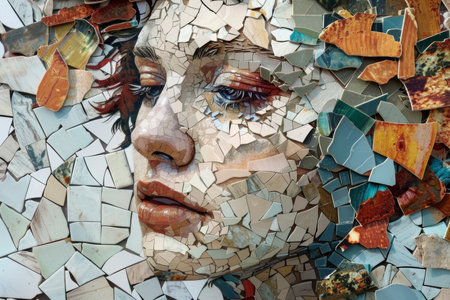 A striking collage showcasing a womans face fragmented by shattered glass pieces, Collage of different stages of recovery after a road accident, AI Generated