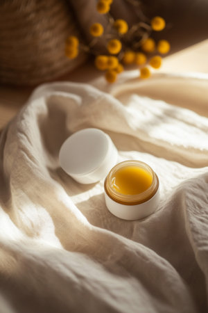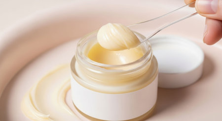 A small white container holds a creamy substance, perfect for skincare routines. The smooth texture shines under soft lighting, suggesting hydration and nourishment for the skin.
