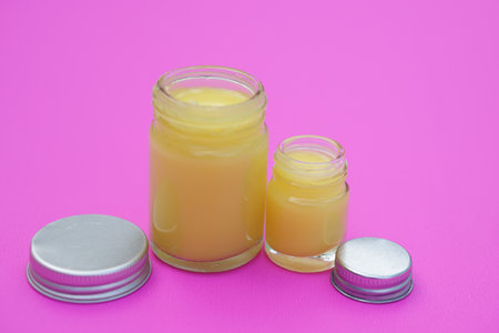 Generative AI : homemade natural lip balm in tin pots natural pink color from beet root DIY projects