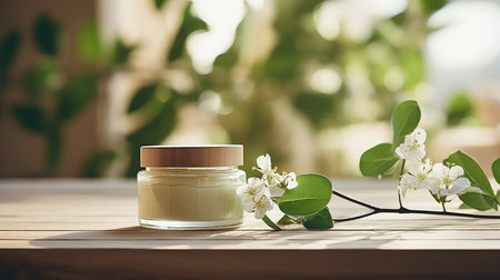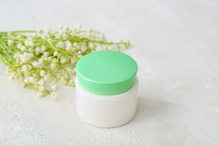 Cosmetic cream in a glass jar. Skin care concept. Background for beauty products