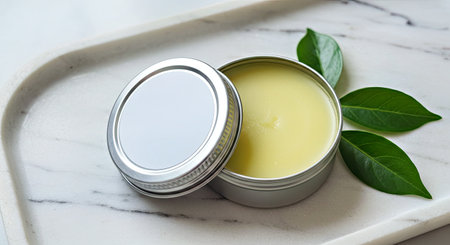 Generative AI : homemade natural lip balm in tin pots DIY projects