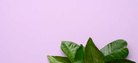 Green citrus leaves, Citrus hystrix (Citrus limon) called the kaffir lime, with dark background
