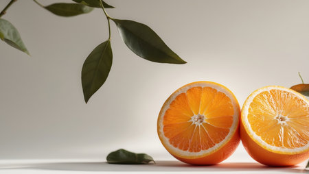 A closeup of sliced and whole oranges on a beautiful light background - perfect organic wallpaper