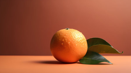 AI Generated. Fresh orange with leaf on light background