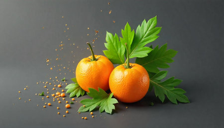 Bright oranges in the background, creating a sunny and refreshing mood. Ideal choice for summer and fruit projects.