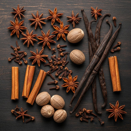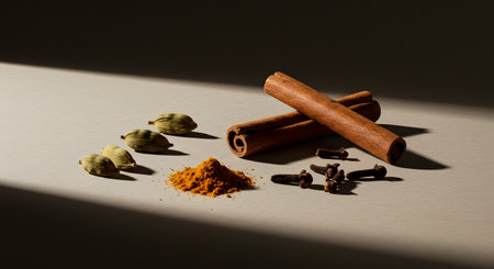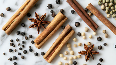 Aromatic Spices Still Life A Beautiful Display of Cinnamon, Star Anise, and Cardamom Pods