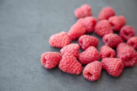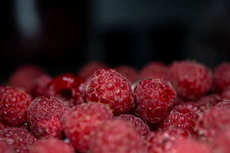A heap of wonderful delicious raspberry lying on the black vitreous surface