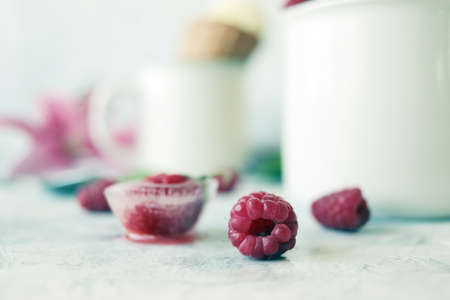 Fresh organic raspberry, bio-fruits from local farm and garden