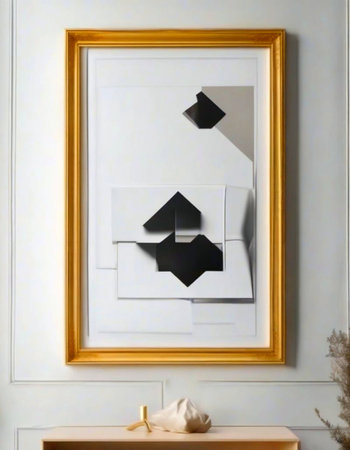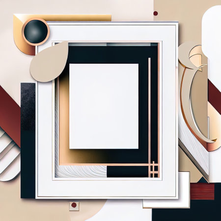 Abstract design of blank luxury frame with Modernist-style collages and visual elements around it with Generative AI.