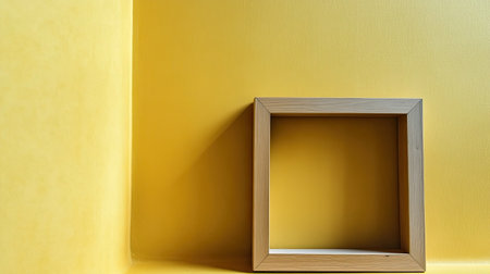 photo of a simple wooden frame with no artwork inside, placed upright on the lower-right of a pastel yellow background. The empty frame contrasts with the large blank area above, isolated on pastel yellow background --no people man woman --chaos 12 --ar 16:9 --style raw --stylize 250 --weird 150 --v 6.1 Job ID: cd21b9aa-2ba1-43b7-ac2a-c4ed530217d4