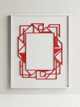 3d rendering of abstract geometric shapes in a frame on a blurred background
