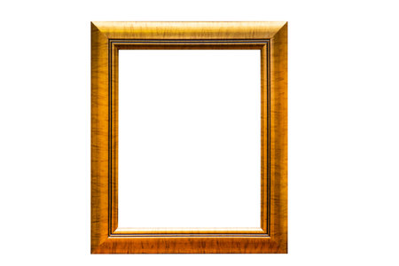 Picture gold wooden frame on the white isolated background