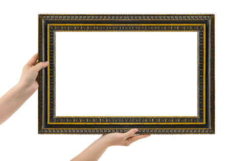 Frame in hands isolated on white background
