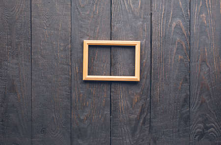 Old wooden picture frame on black wall
