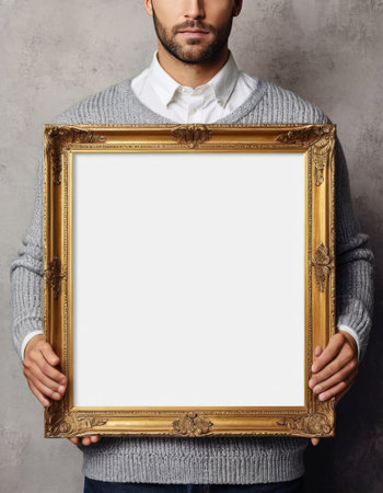 Man Holding Blank Golden Frame