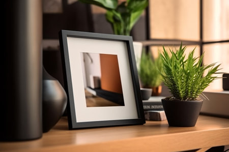 blank mockup photo frame on table in modern room.AI generated