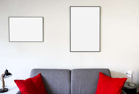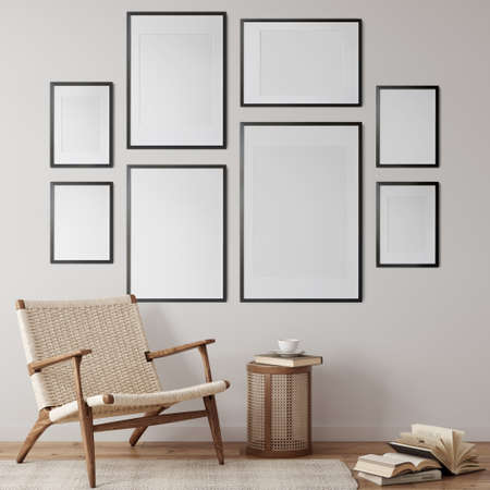 Friendly interior style. living room. Frame mockup. Poster mockup. 3d rendering, 3d illustration