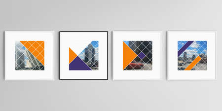 Realistic vector set of square picture frames isolated on gray background. Abstract design project in geometric style with squares and place for photo.