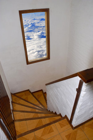 Rectangular rotating ladder, step by step, there is sense of perspective.