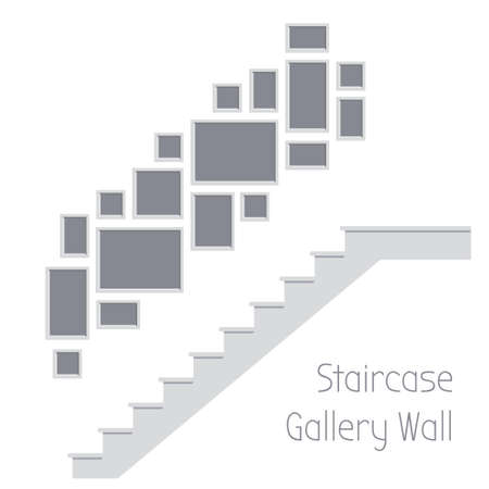 Staircase gallery wall with collage frames. Vector mockup of mosaic grid of photo or illustration for moodboard isolated on white background
