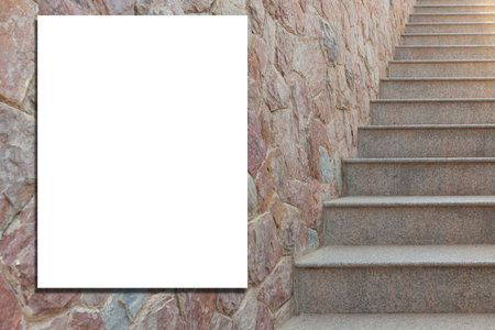 Contemporary stone stairs and blank billboard on the wall, space for text. 3d illustration
