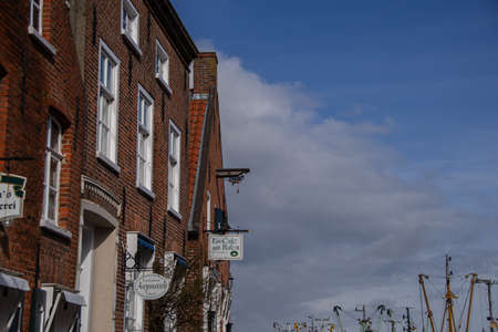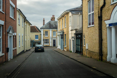 Town houses in typical English village street. Wymondham UK. Pretty market town in Norfolk, England.