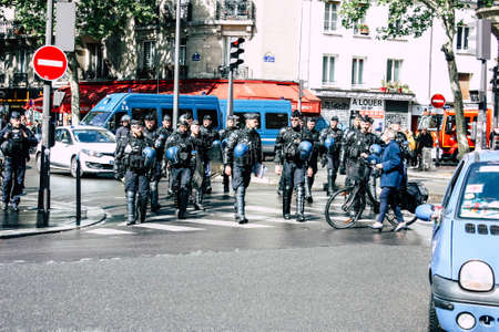 Paris France May 04, 2019 View of a riot squad of the French National Police in intervention during protests of the Yellow Jackets against the policy of President Macron in Paris on saturday afternoon
